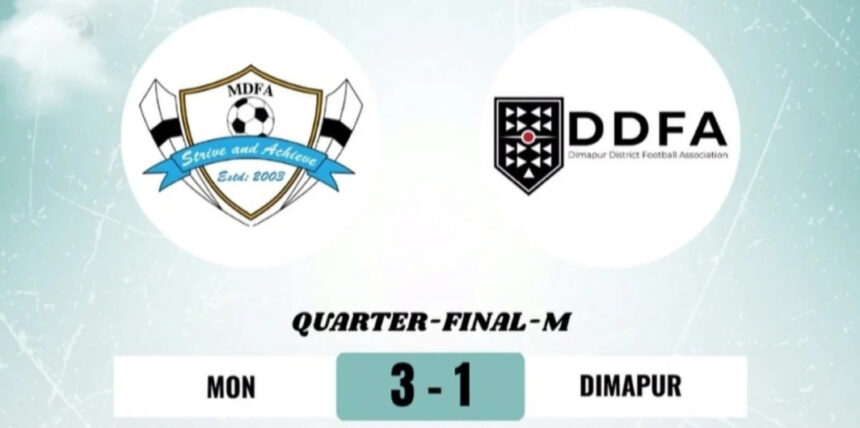 Kohima, Aug 11: Mon District Football Association (MDFA) booked their place in the semi-finals of the 24th Inter-District Football Championship 2025 (Dr. T. Ao Trophy) with a commanding 3–1 win over Dimapur District Football Association (DDFA) in the quarter-final clash.